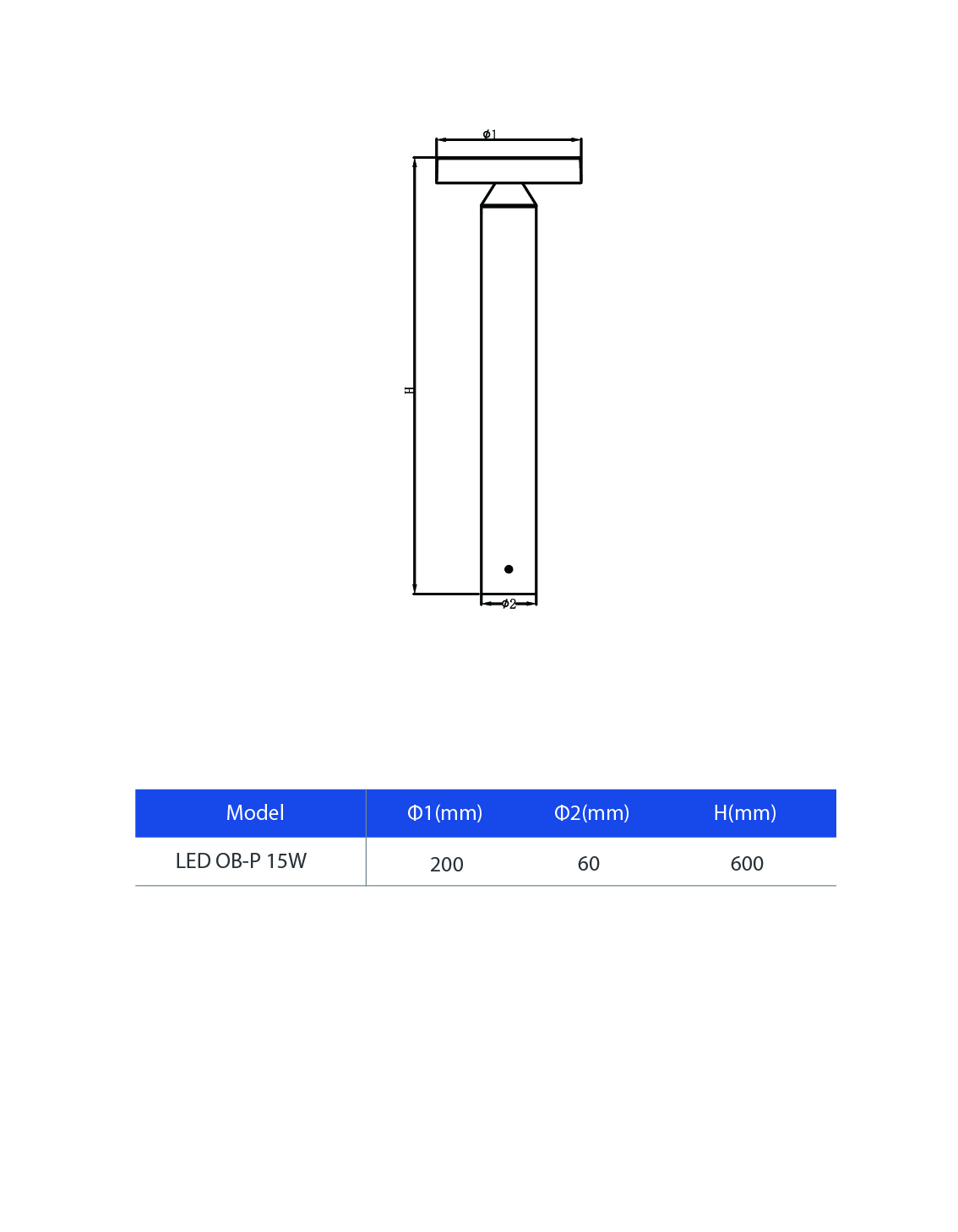 LED Bollard-P H600 15W 3000-BK-GP